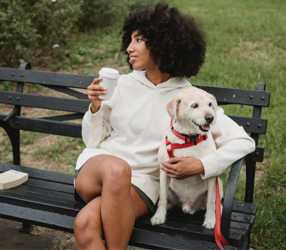 The woman in the image embodies this ritual: coffee in one hand, dog by her side, and nature as the backdrop. It’s a reminder that mindfulness doesn’t always require meditation cushions or silent retreats. Sometimes, it’s as simple as sipping coffee with your furry companion in the park.